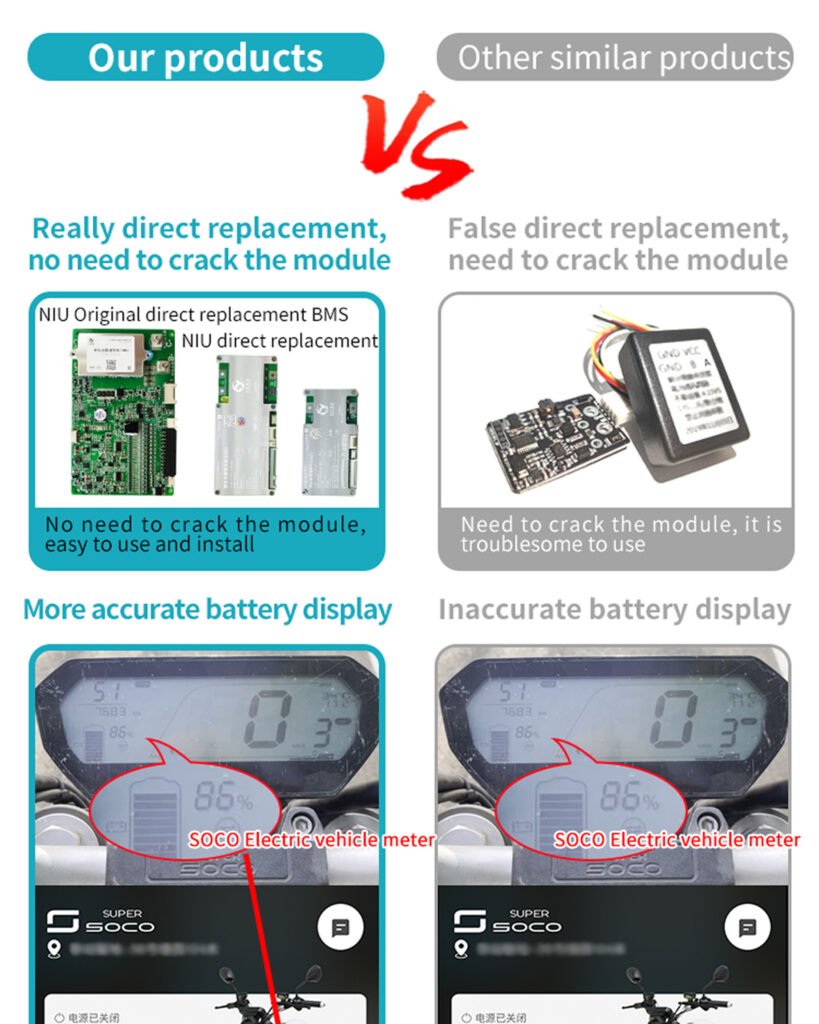 The products sold in this shop are made of high-quality materials, compatible with SOCO TS/TC series train models, and support APP power, meters and other original car functions. The size is same as the original one without changing the warehouse.
