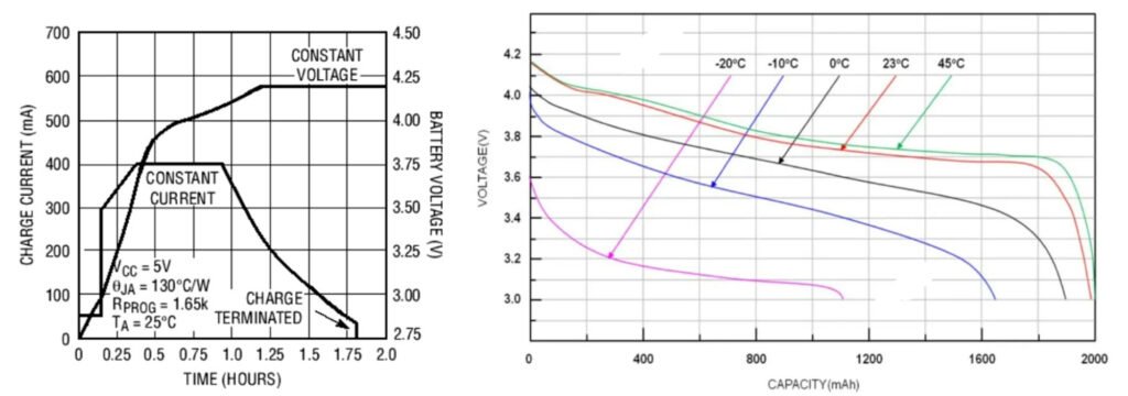 De laad-ontlaadcurve van lithiumbatterijen hangt niet alleen af van de grootte van de laad- en ontlaadstromen, maar ook van de temperatuur, zoals weergegeven in de onderstaande afbeelding.